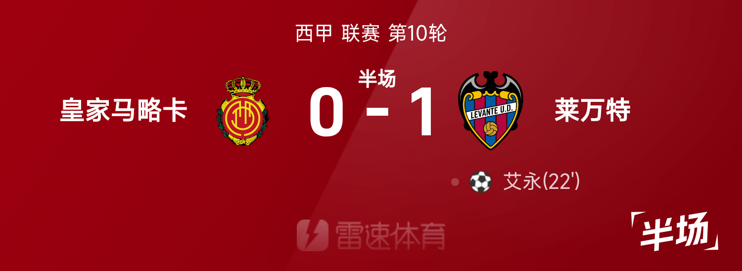 La Liga halftime: Ai Yongtai scored from the far corner, Levante temporarily 1-0 Mallorca