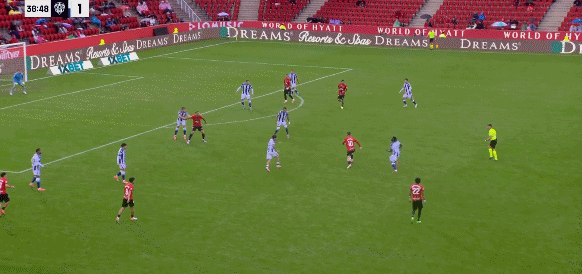 Real Mallorca starting lineup: 1-Roman, 24-Vargent, 22-Mojica, 23-Maffeo, 21-Railo, 10-Dardel, 8-Moranes, 12-Costa, 18 -Joseph, 17-Vigili, 7-Muriqui