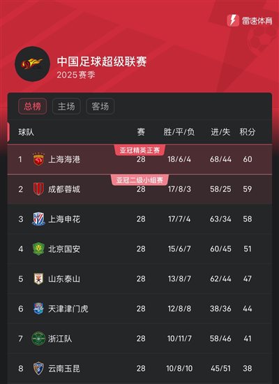 6686 Sports News on October 26 The Chinese Super League ended its 28th round today. In this round, the top four teams in the Chinese Super League all "overturned". Haigang, Chengdu, Shenhua, and Guoan all failed to win. With two rounds of the season left to go, there was only 2 points between the top three, and Guoan completely withdrew from the championship.