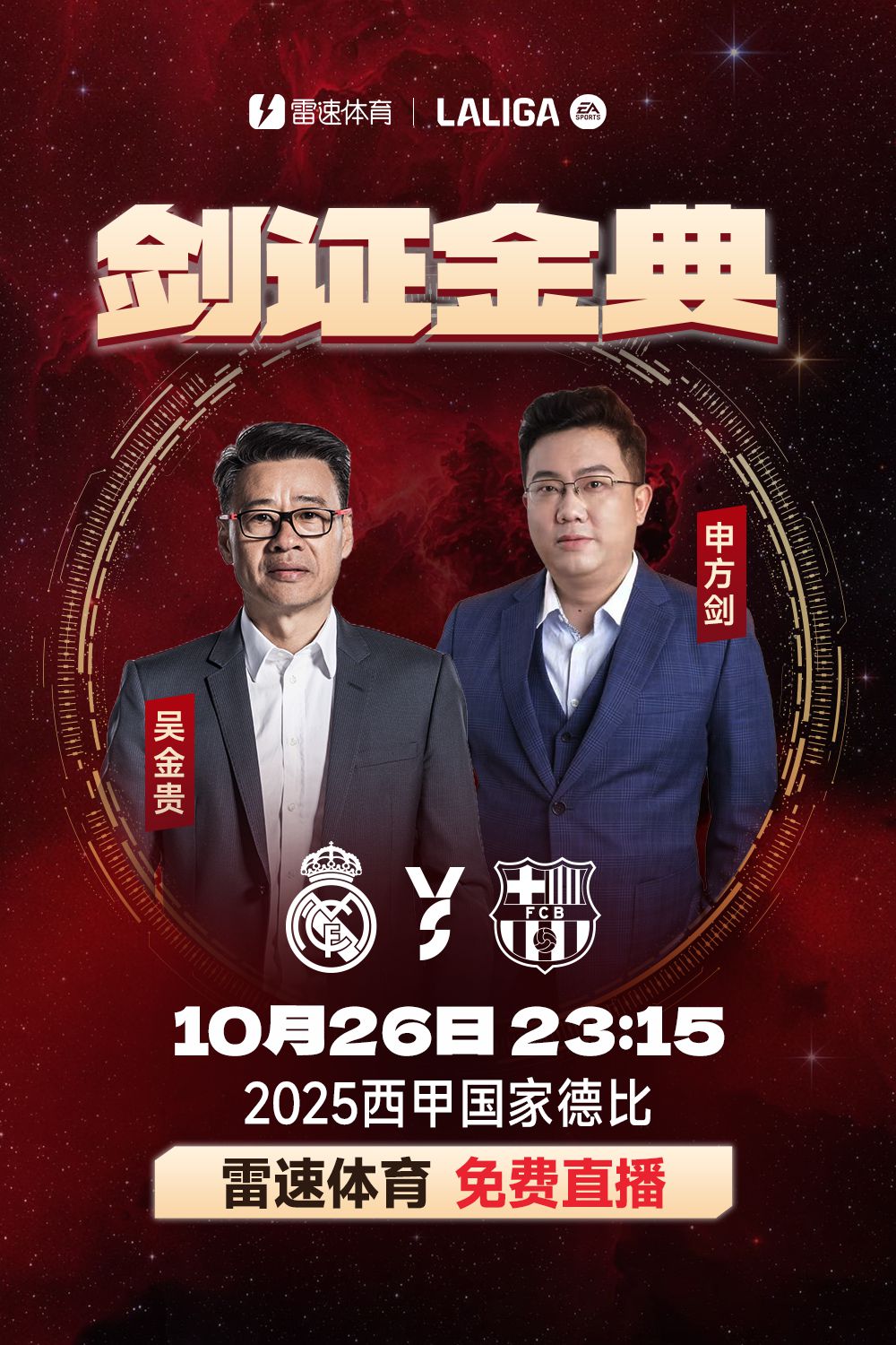 At 23:15 on October 26th, Beijing time, in the 10th round of La Liga, Real Madrid will face Barcelona at the home team stadium. This will be the first Spanish national derby this season. 6686 Sports will broadcast this focus match live for free, and is honored to invite two special guests to commentate on this game, namely the well-known coach Wu Jingui and the famous commentator Shen Fangjian.