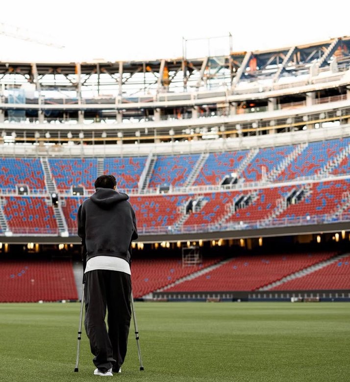 Subsequently, Garvey shared a photo on social media of himself stepping into the Nou Camp on crutches.