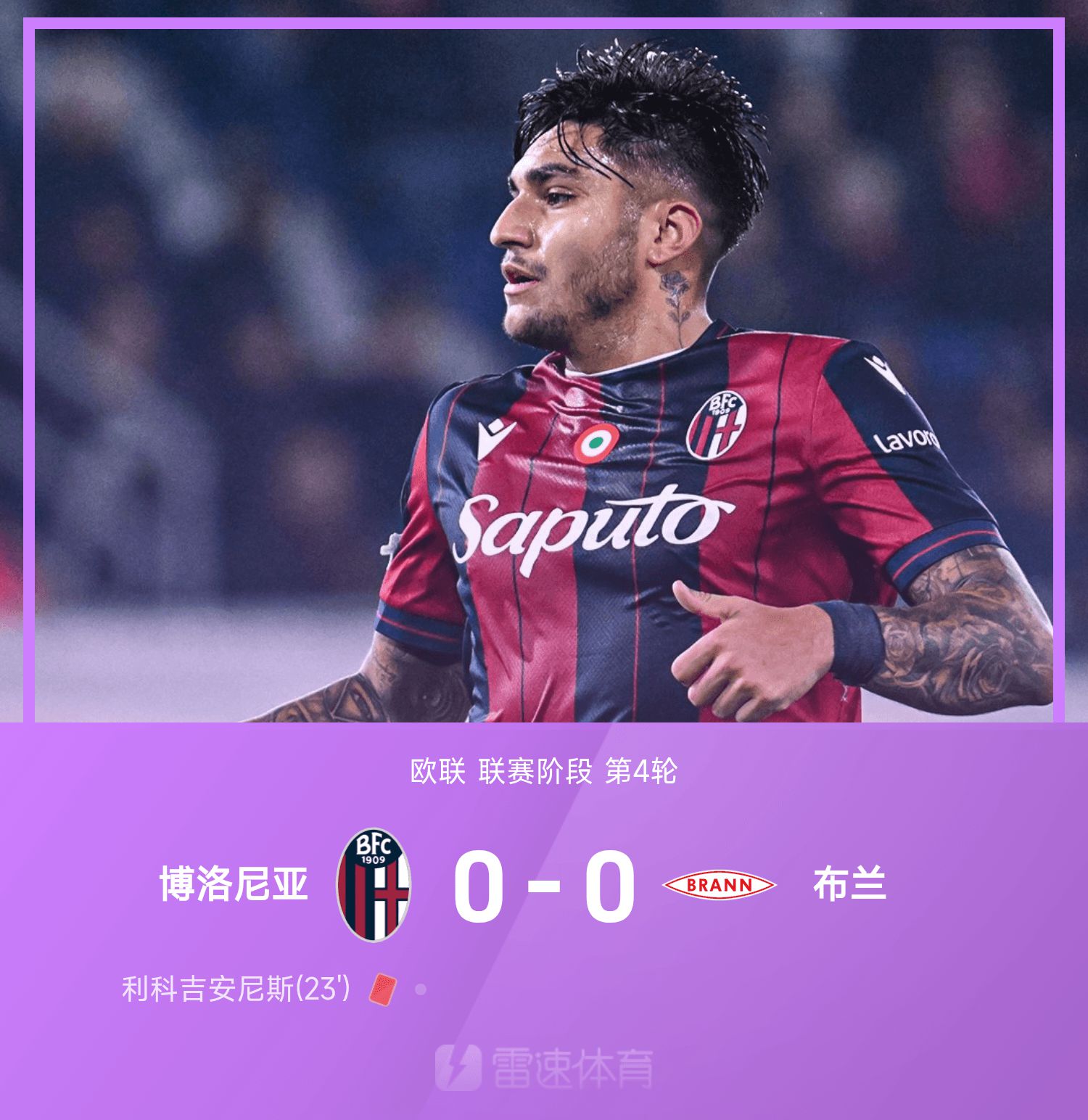 6686 Sports News on November 7th In the fourth round of the 25/26 Europa League, Bologna played at home against Branca. Liko Giannis was red in the first half of the game. In the whole game, the two teams only hit the door frame 3 times in total, and the game was also very boring. In the end, ten-man Bologna tied with Brannen 0-0 at home.