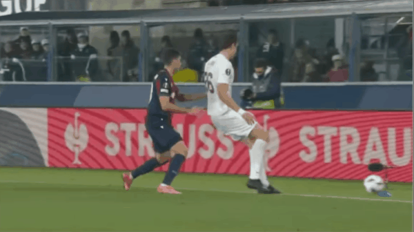18’ A dangerous own goal! Bologna attacked from the right, and Bernardeschi's pass from the penalty area almost bounced into the goalmouth