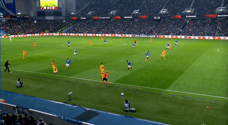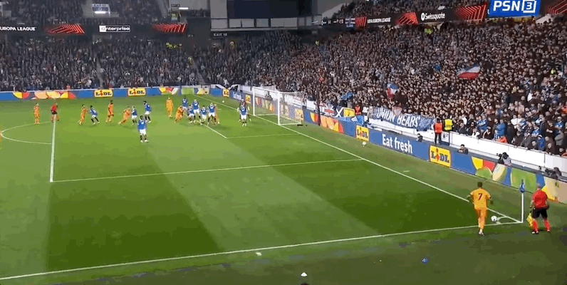 22’ Sule took a shot from the outside, and the Rangers goalkeeper saved the ball from the end line