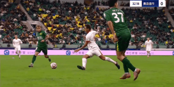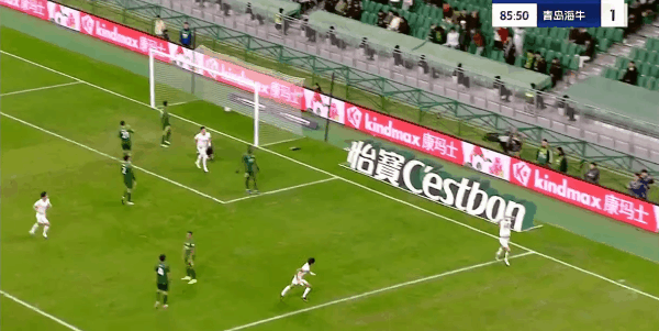 18' Manatee passed the ball from the right to the goal, and He Yupeng chased back and contributed the key clearance