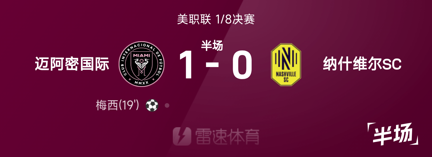 US halftime: Su Ya assists Messi to score with a header, Miami temporarily 1-0 Nashville
