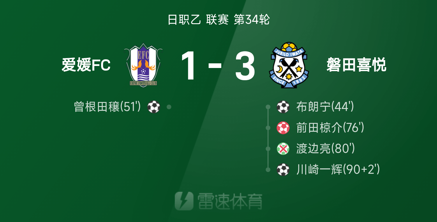 Japan League B match report: Maeda Fukusuke owns an own goal, Watanabe Ryo misses a point, Ehime 1-3 Iwata Joy