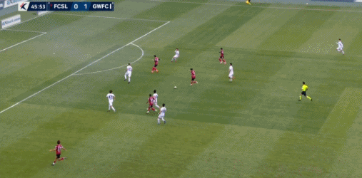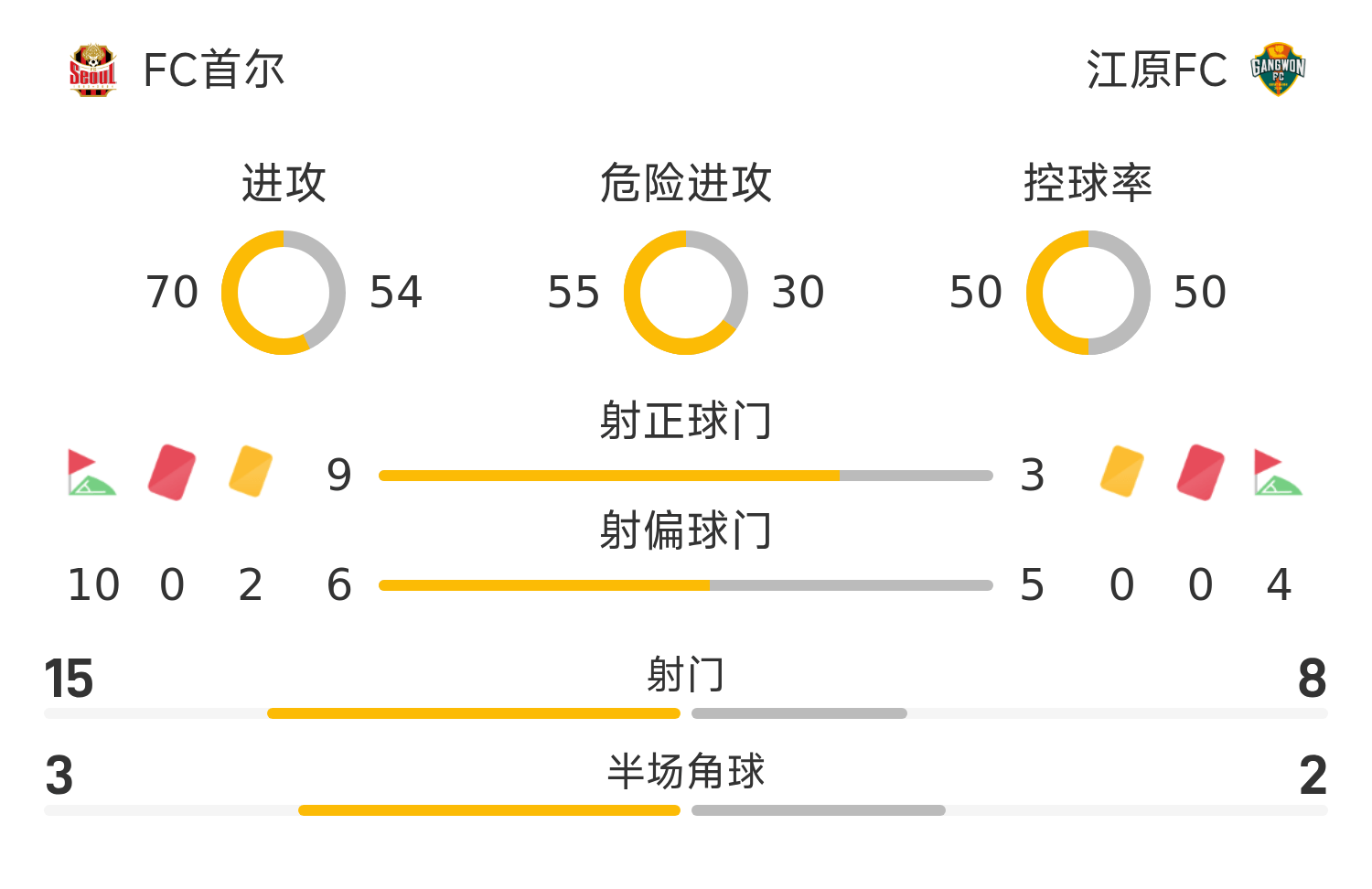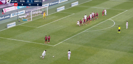 45+3' Gangwon took the free kick into the three-second zone, but Li Sangxian failed to pose a threat