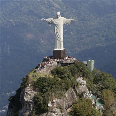The flag is adapted from Brazil's famous Jesus statue. The statue is located in Tijuca National Park in Rio de Janeiro, Brazil. It was created to commemorate the 100th anniversary of Brazil's independence. It is 30 meters high, has arms spread 28 meters, weighs 1,145 tons, and has a base area of 100 square meters.