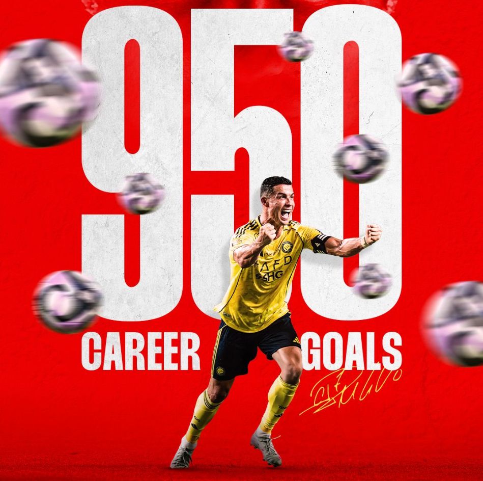 Cristiano Ronaldo reaches the 950th goal milestone in his career, still 50 goals short of the 1,000-goal mark